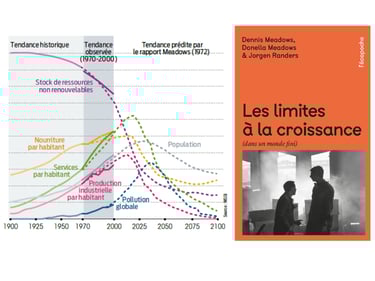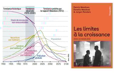 D’un coté, n a une prise de conscience 25 ans avant, Le club de Rome publie le rapport Meadows qui s’appelle « halte à la croissance ». La soutenabilité de la consommation des ressources est pointée du doigt. [i]